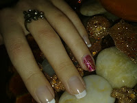 3. Now, it's time to do the marbeling part. Pick two colours of your choice (I wanted the look to be somewhat festive so I chose elf Cranberry and elf Blush). Apply another coat of the nude pink on one of the ring fingers and while it is still wet, put random dots of both polishes over the nail. Take a dotting tool/detailing nail art brush and swirl the colours together in a random pattern to achieve the marbeled effect. Repeat on the other ring finger and when dry seal with a top coat. That's it you're done!